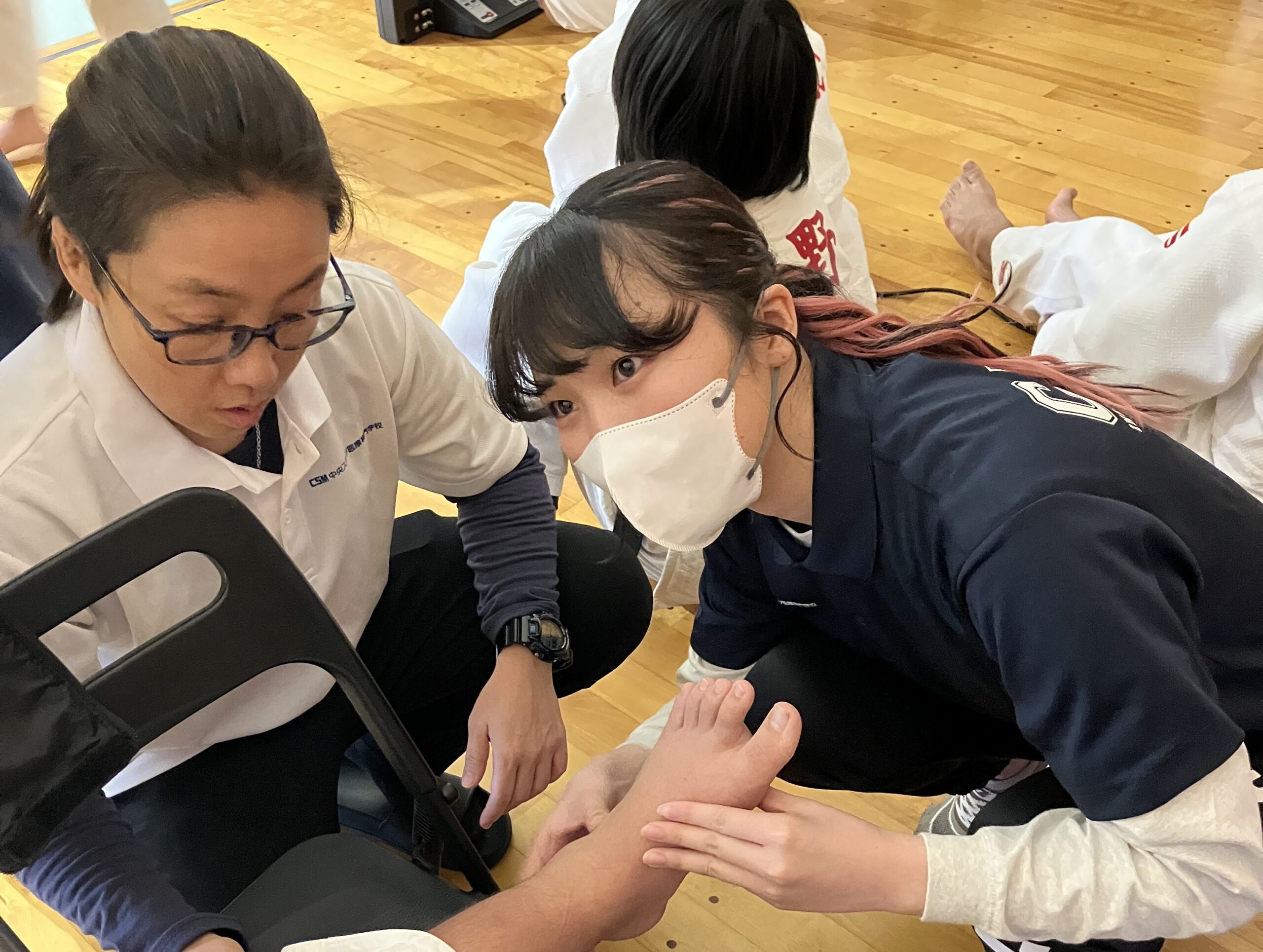 ケガの処置や体のコンディショニングケアなど、接骨院やスポーツ現場で実際に行っている治療内容を軸に実技を行います!